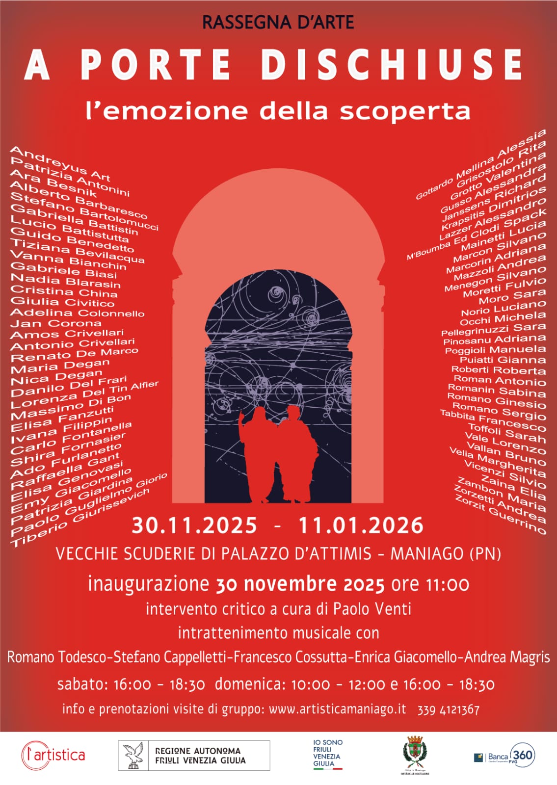 Rassegna d’Arte A PORTE DISCHIUSE – l’emozione della scoperta Vecchie Scuderie di Palazzo D’Attimis via Umberto I 4 33085 Maniago PN Italy 30 November 2025 – 11 January 2026